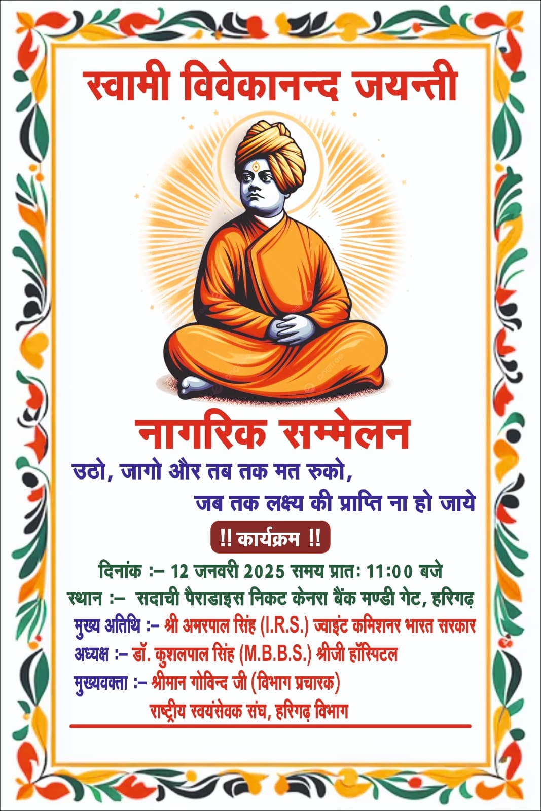 दिनांक 12 जनवरी 2025 को हरिगढ़ में आयोजित स्वामी विवेकानंद जयंती कार्यक्रम नागरिक सम्मेलन का आयोजन किया जा रहा है…